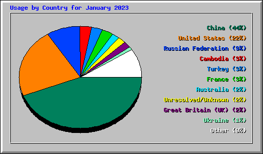 | # | Hits | Files | kB F | kB In | kB Out | Country | |||||